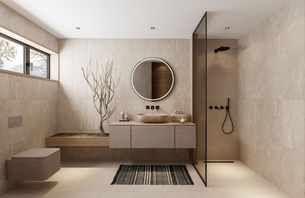 Incorporate stone shower surrounds, echoing the region’s historic architecture.