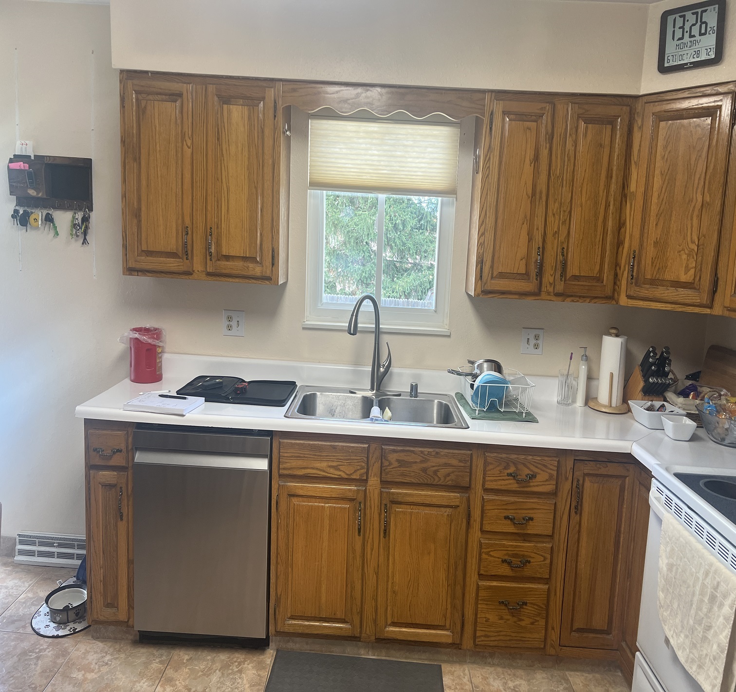 Final touches include a fresh coat of Sherwin Williams Nearly Peach paint on the kitchen and living room walls, adding warmth and a subtle pop of color. With modern finishes and thoughtful updates, this remodel enhances both the beauty and functionality of the space.