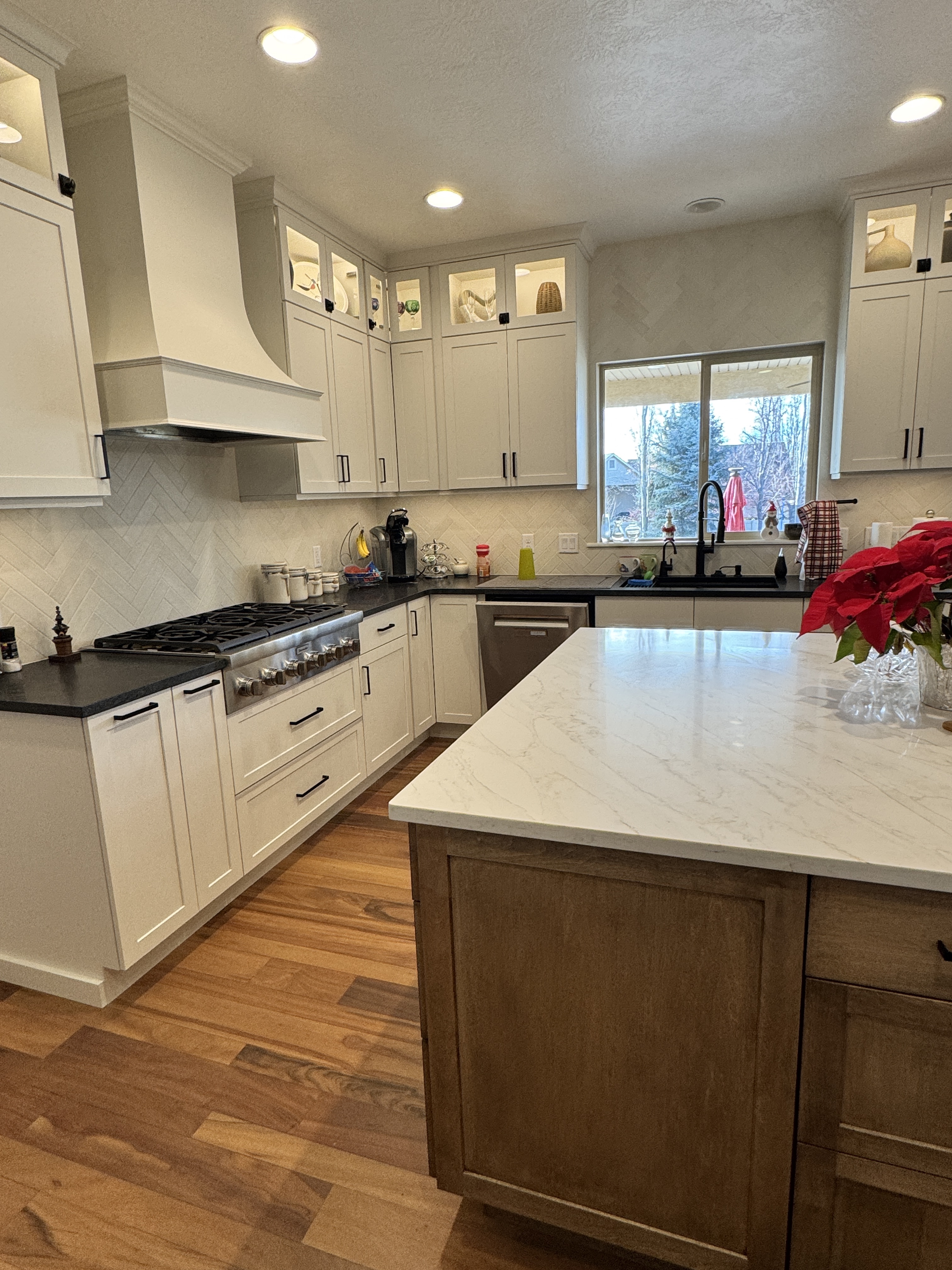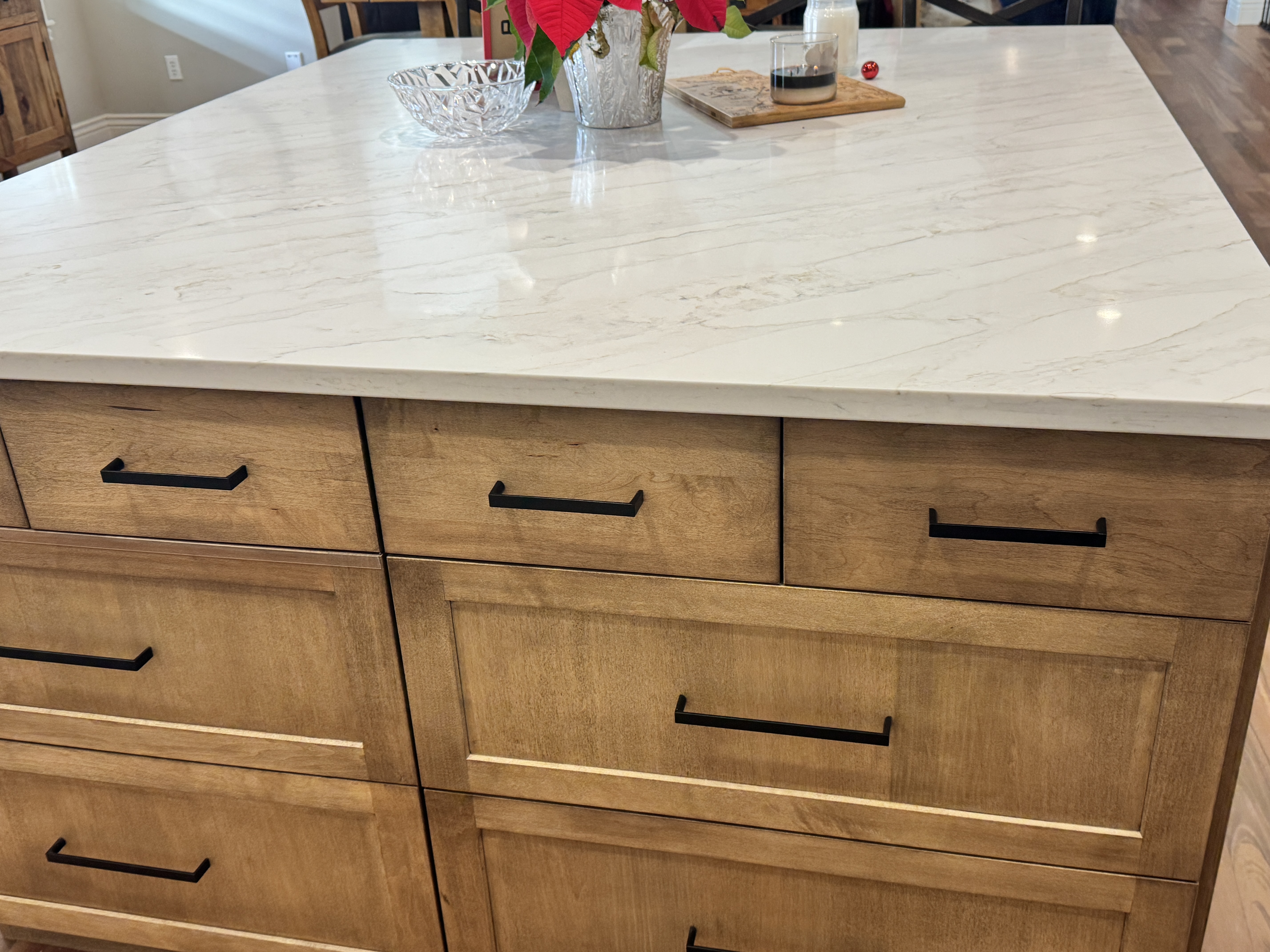 The island is such a massive island. The homeowner will have so much room for prep space and so many spaces on the back of the island for all the grandkids to sit and enjoy time together.