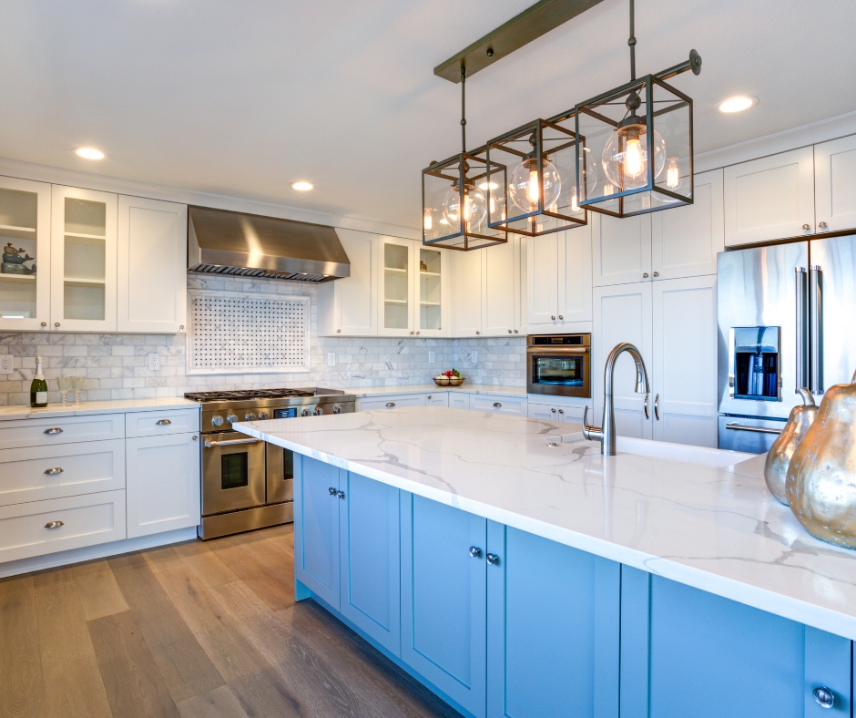 Project Summary We remodeled this client’s entire home, and this bold new kitchen is truly stunning! We removed the dividing wall between the dining area and the kitchen in order to open up the space and increase the exposure to natural light. With the wall gone, we were able to design the kitchen around an oversized island […]