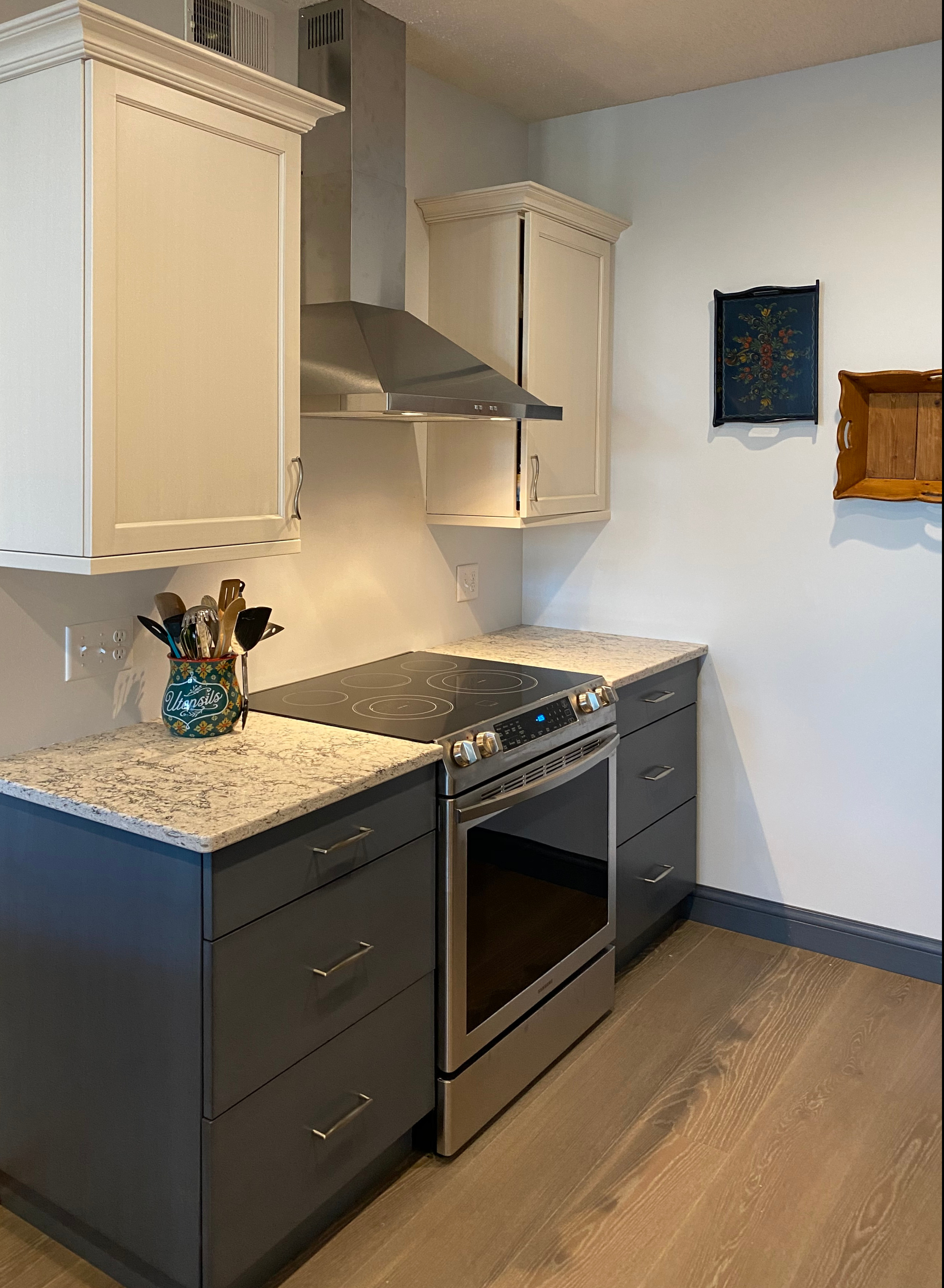 Project Summary New to the city, this couple wanted to experience downtown living. They found a 12th floor condo with big windows and beautiful views of all the city has to offer, but the kitchen was dark and didn't speak to their personalities or their needs. Their remodeled kitchen is now light-filled and warm, comfortable for the two of them and their two newly adopted cats to begin their next chapter.