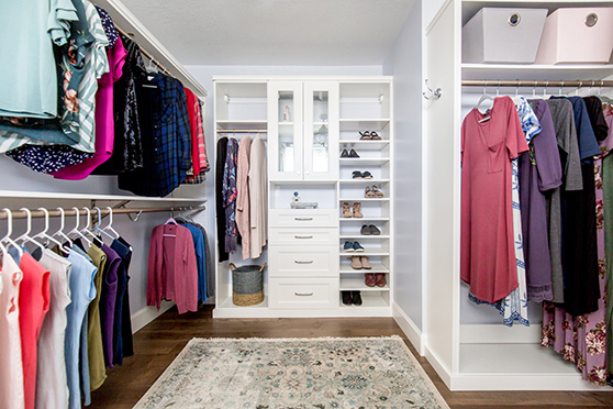 If you long to get organized, a closet is a great place to start. Here in LOCATION, we can suggest several options to make organizing easy. Having a custom closet means the end of digging through a pile of shoes on the floor to find a matching pair or having a stack of T-shirts fall on your head as you’re reaching for only one.We can design a closet solution for you! Whether you opt for a luxurious walk-in closet or a simply have your present closet equipped with organizers, we offer full design services, professional installation and product choices to fit every budget.Let us help you with the following: