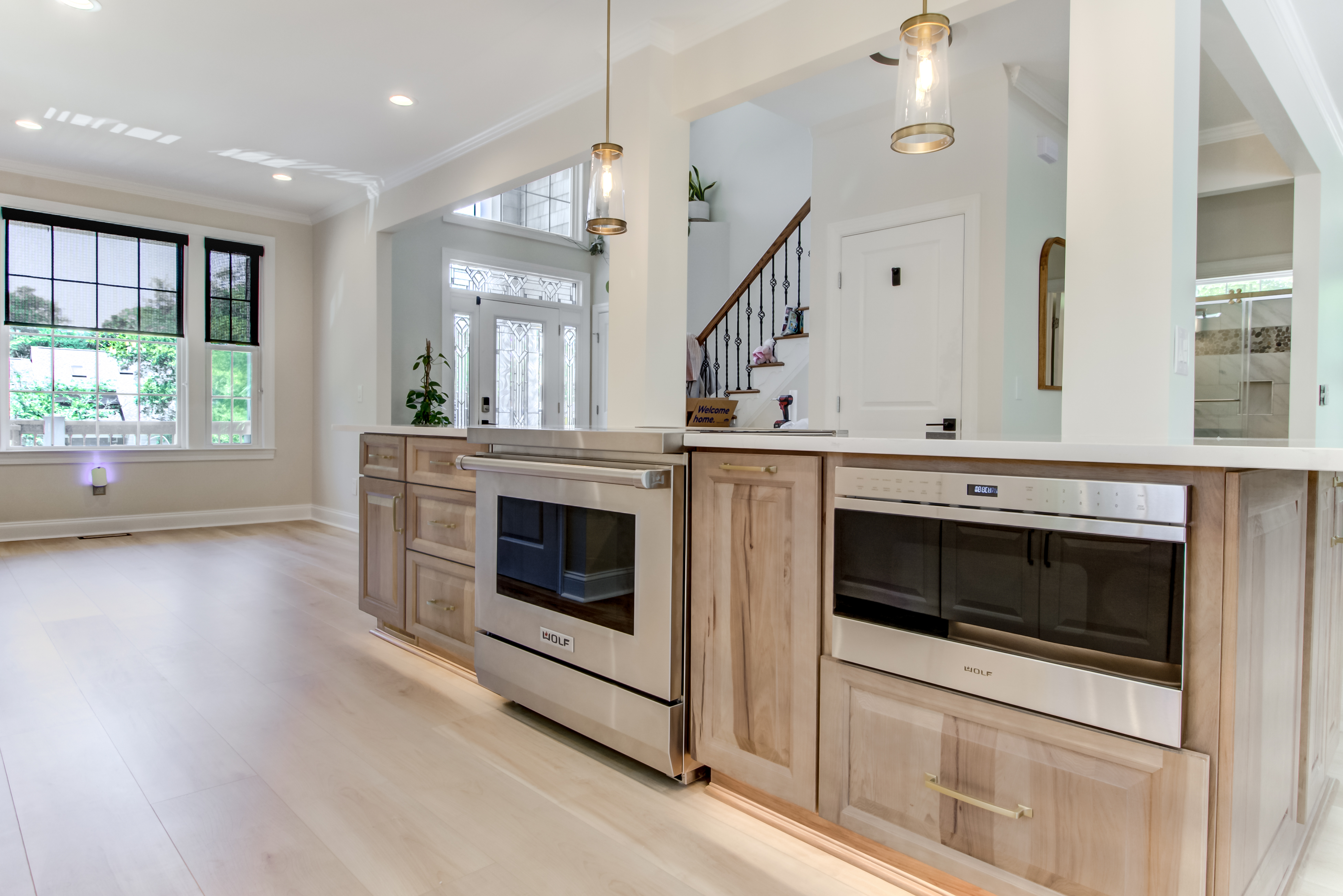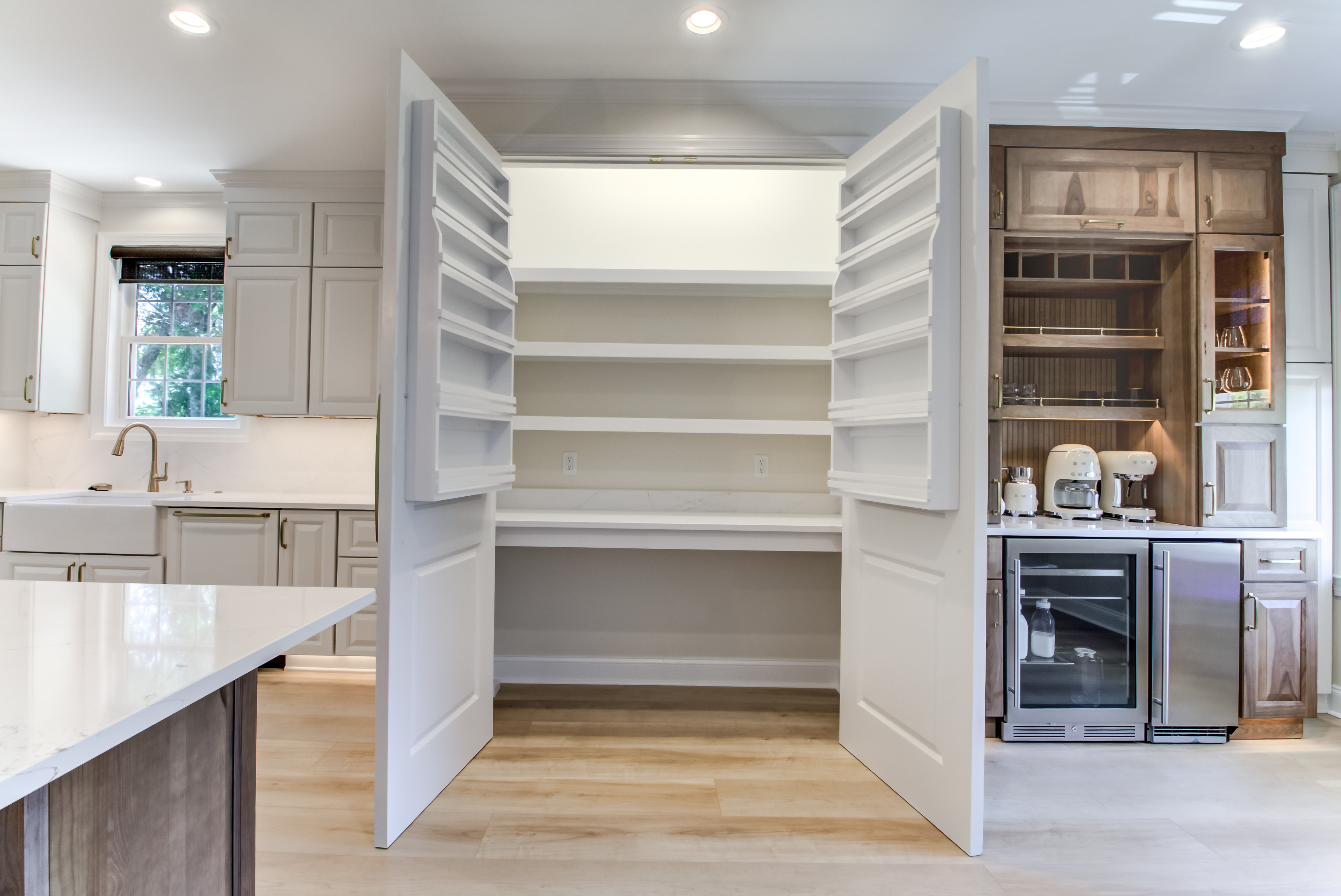 The result? A bright, open-concept kitchen with a walk-in custom pantry, a built-in coffee bar, and a show-stopping center island — perfect for family meals, morning coffee, and showing off a space they’re truly proud to call their own.