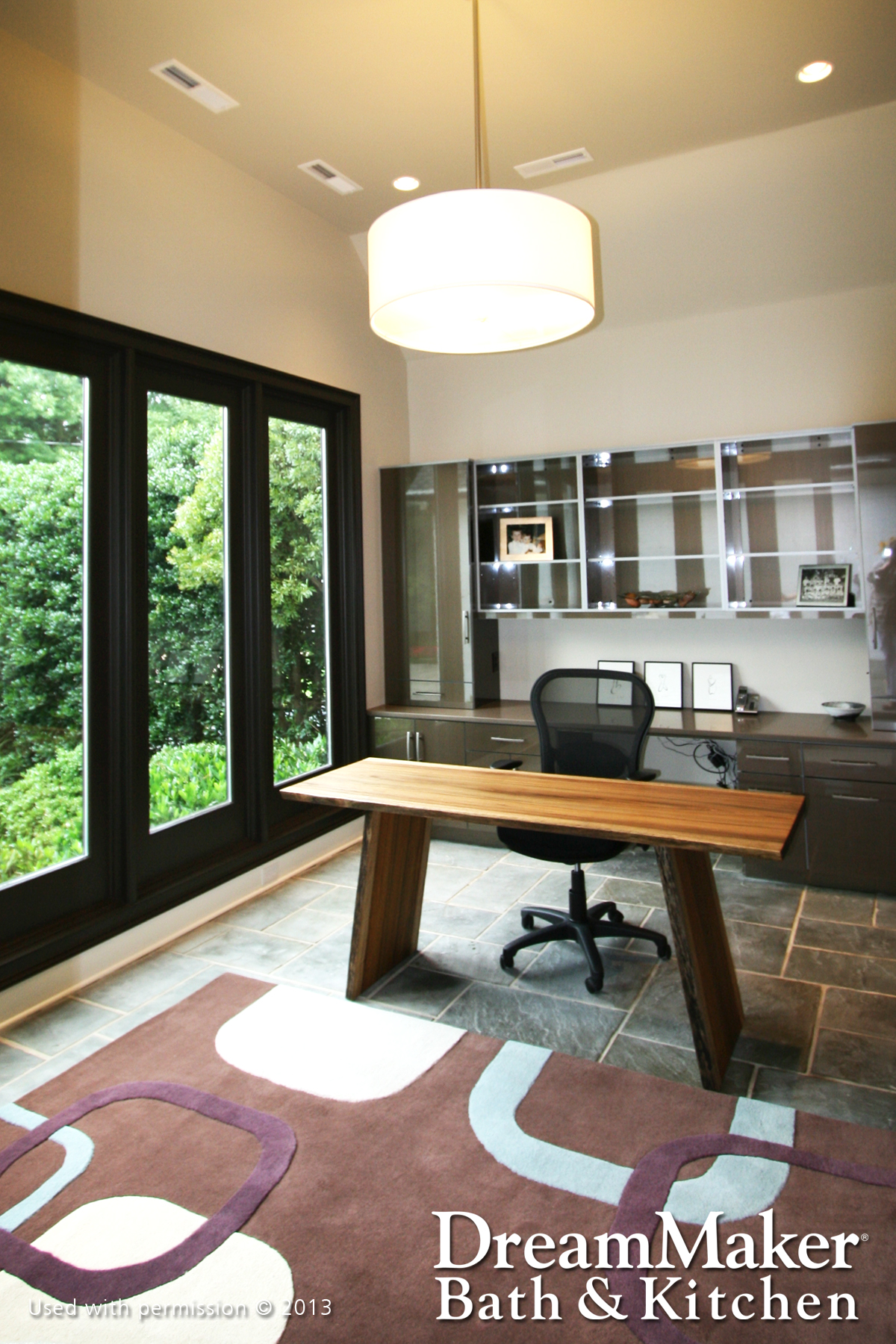 Project Summary Starting with an empty, dirty, open space with painted paw prints on a concrete floor from the previous dog-grooming salon, we built a beautiful design center with kitchen and bathroom vignettes, displays of cabinet doors, counter top materials, tiles, hardware and more. We also built a comfortable selection room with a large monitor for reviewing remodeling plans and 3D designs with customers.